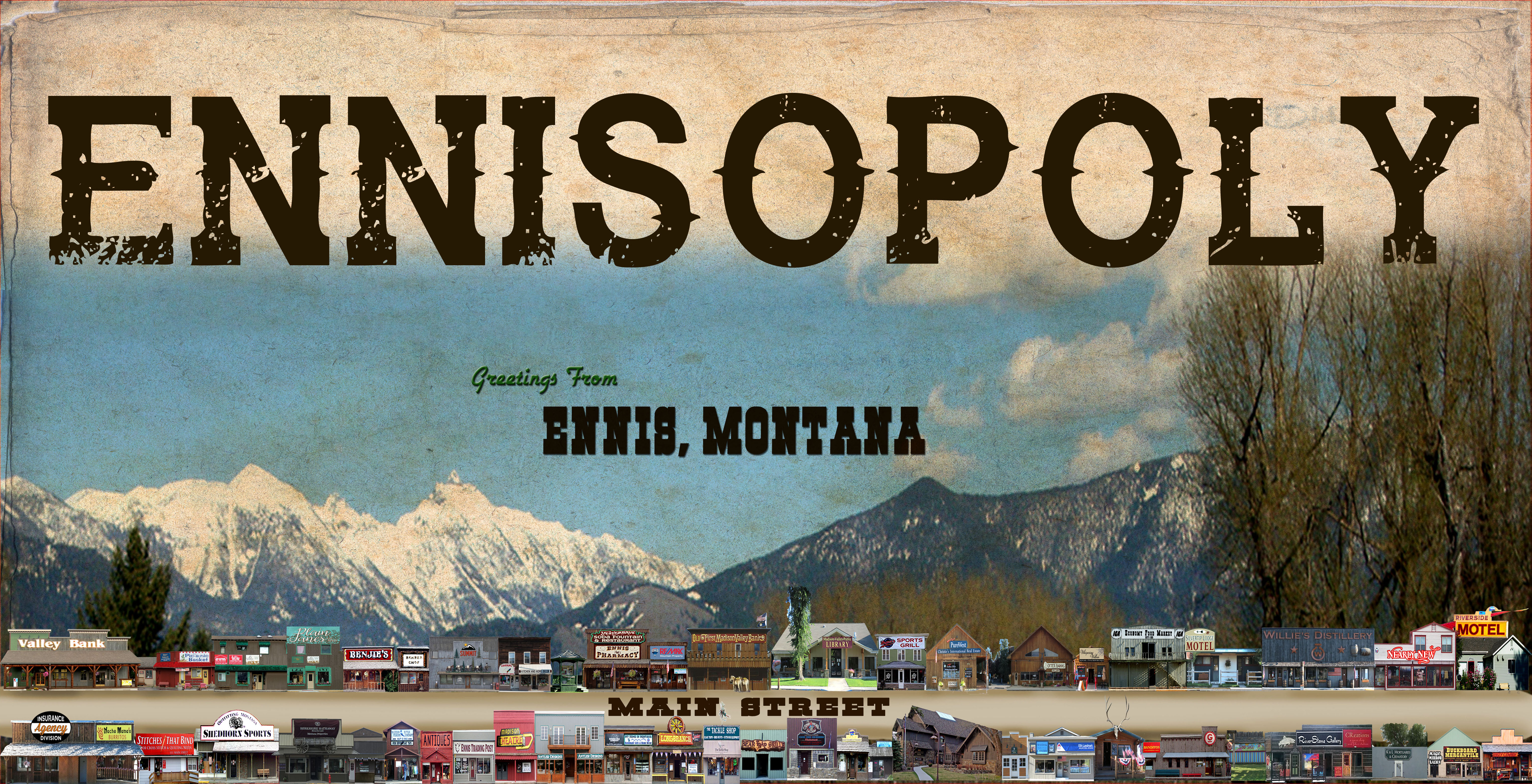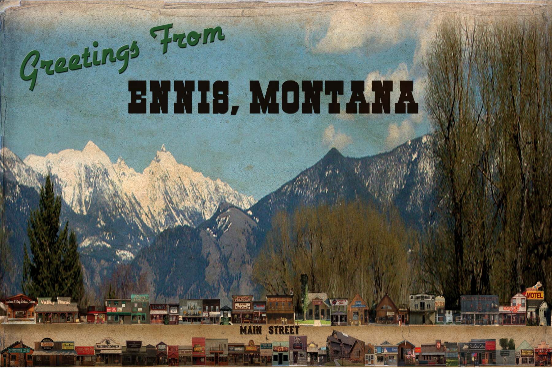Click on FIRST FLOOR for Ennis, MT Wooden Postcards
