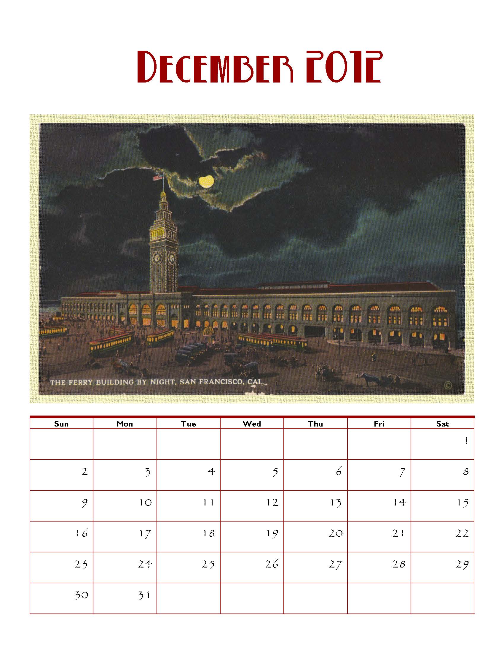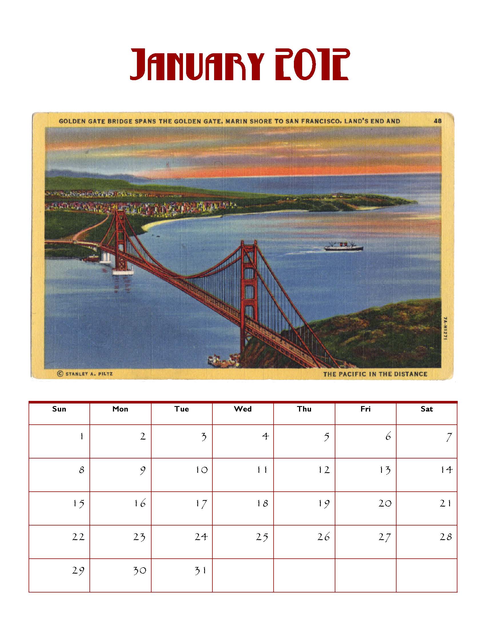 This is a calendar I made using old postcards of San Francisco for Aunt Bonnie and Jessica who live in SF.